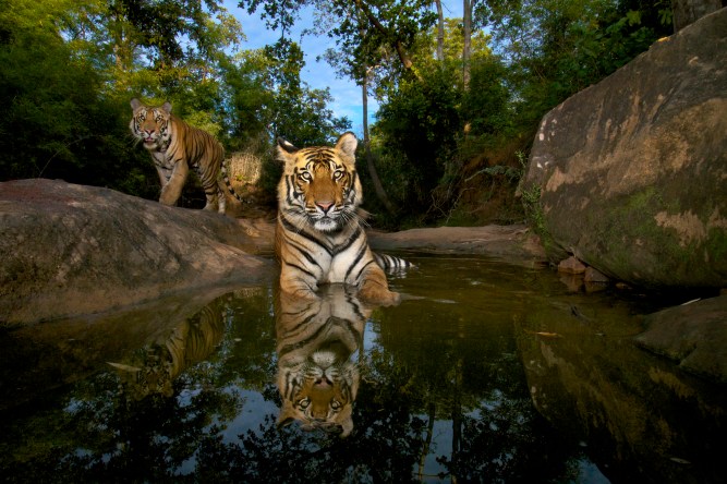 Above: Last Wild Picture by Steve Winter (USA). Two Bengal tiger cubs who had turned man-eater were re-housed in a facility for problem tigers. They will never be released but at least they were not killed. Veolia Environnement Wildlife Photographer of the Year 2012.