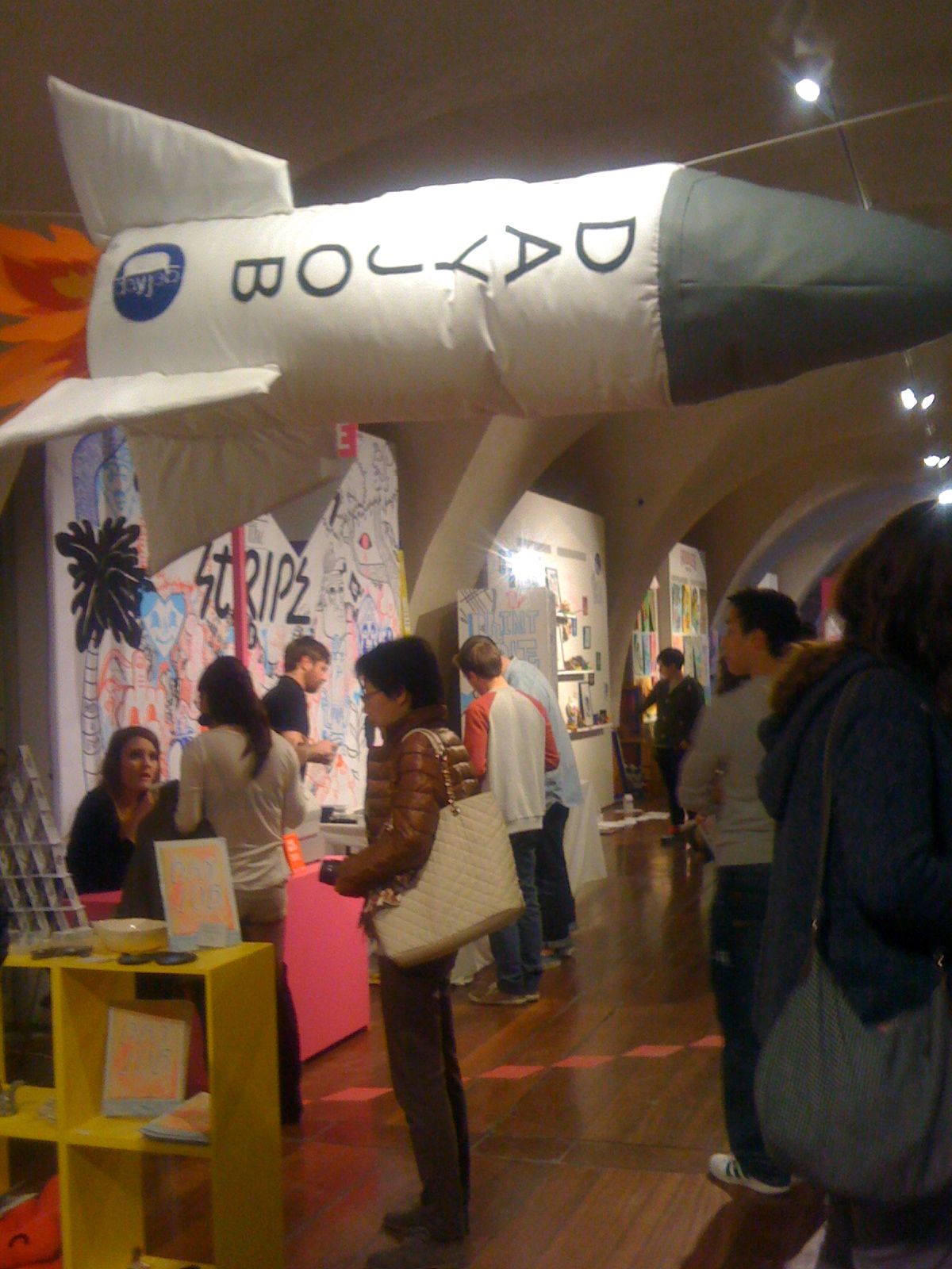 At the weekend some of the GDP family went to see this year’s big graphic arts event, Pick Me Up, at Somerset House. I’ve been doing a lot of study lately about collaboration and connectivism – networking and creating with others. So, Pick Me Up fitted (as usual) right into this ethos. I don’t always personally love all of the art on display, but what I do like each year is the friendly atmosphere of people working with each other. Many of the displays are put on by small collectives of, mostly, young creative illustrators, printers and graphic novel makers. The benefits of working in small groups is clear financially and support-wise, but it just seems such fun too!