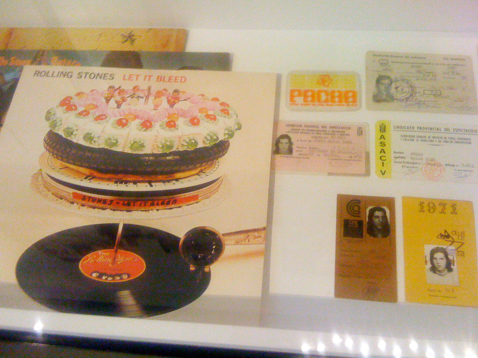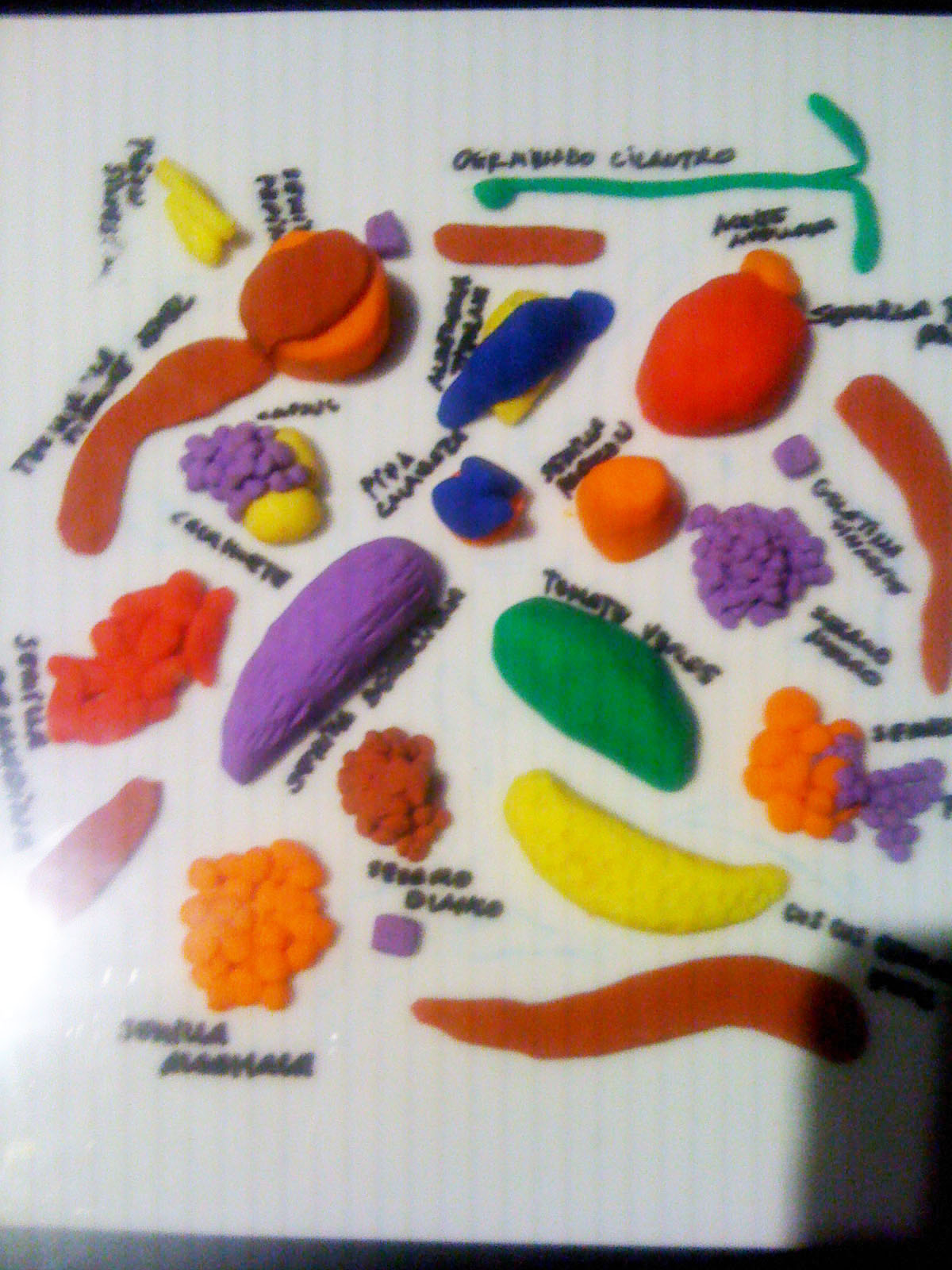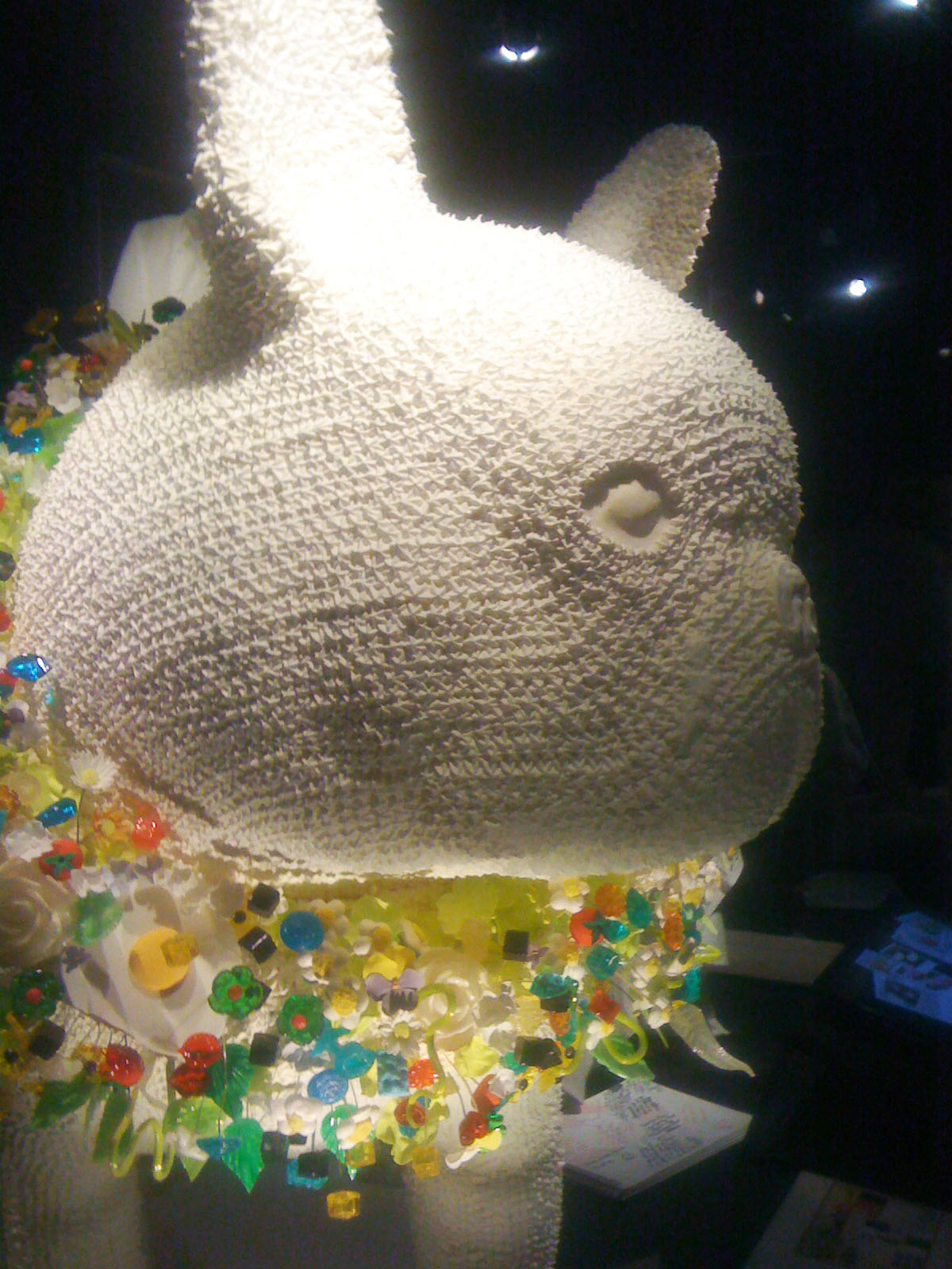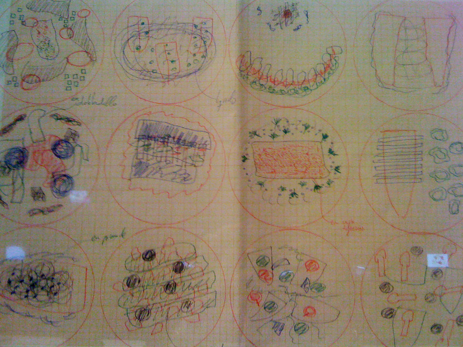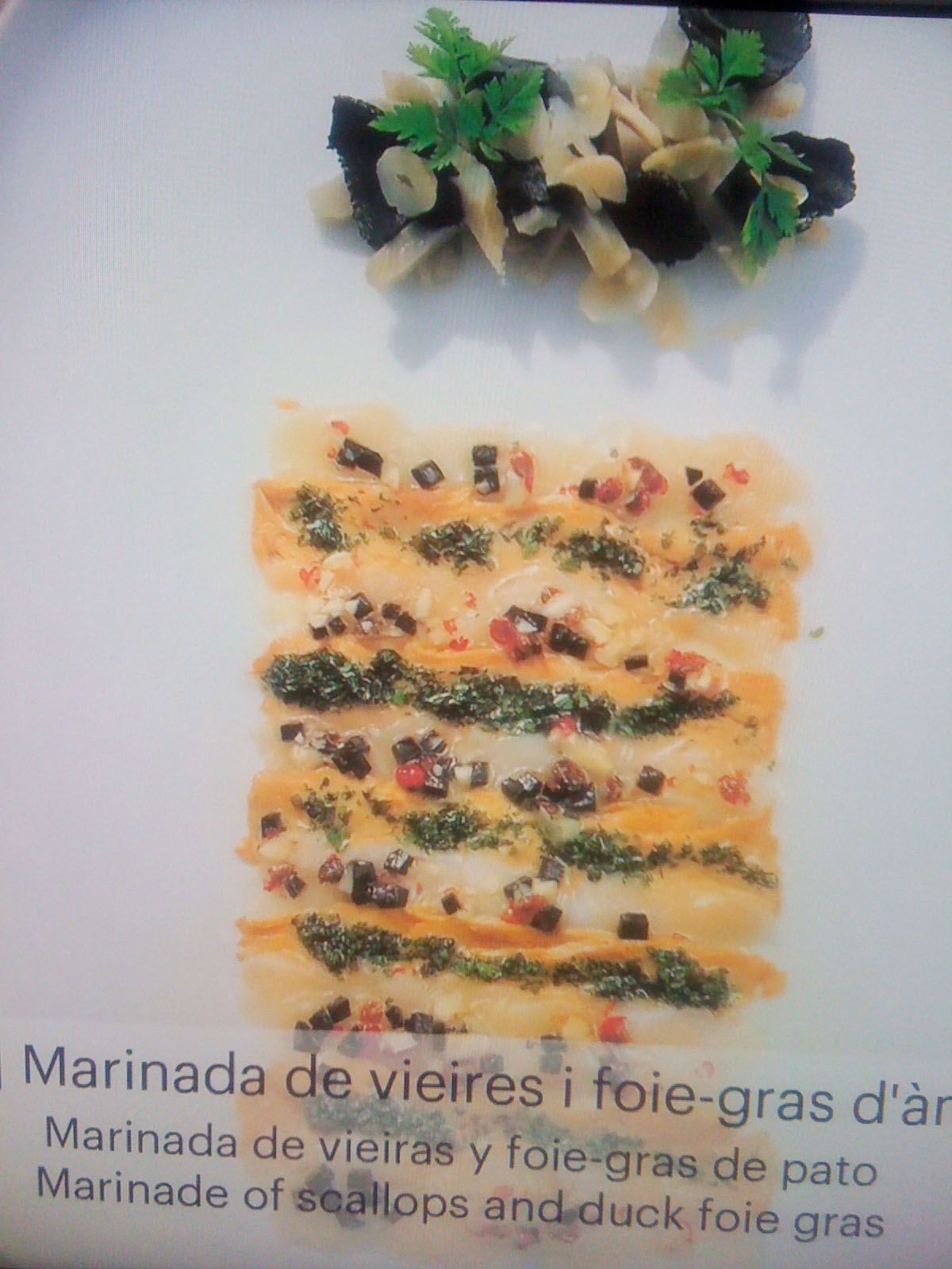 …vigorously waltzes you through the bursting colours; grates and oozes you face first over the textures; shocks you with the food photography (personally I wouldn’t like to eat a baby octopus pirouetting on its tentacles – but the stunning black and pink of the photo is mesmerising); tempts you with the over-sized chocolates; plonks you at the projected elBulli table and serves you virtually while the other customers eat, drink and are merry behind you on screen; captivates you into conversation with the gesturing chef on a life-sized screen; stings you with interest at the range of notebooks and journals (why is there a lovely illustration of a dead bird?…I suppose it is an ingredient, or perhaps just its tongue is); dazzles you with the shiny range of cutlery that some OCD magpie has lined up in a glass case; wafts you over, under and around bits of moulded and bent metal that are something mysterious and spell-binding to do with shaping pieces of food; recalls childhood memories of the tackily designed covers of well-thumbed 1960s and 70s European and Moroccan recipe books; shrinks you to guide you through bleached bone coloured 3D models of the buildings on their rocky shore-line; flings you into the ball-pit of coloured plasticine shapes that are prototypes for plated recipes (I loved this section of plate mock-ups next to projected finished pieces – real hands-on design emphasising the aesthetics of the food not just the taste); insists to you that the chefs are rock stars by displaying their Stones albums as well as their photos; educates you by blending science and cookery…..I hope this reads more like a poem than a list because the experience made me feel poetic!