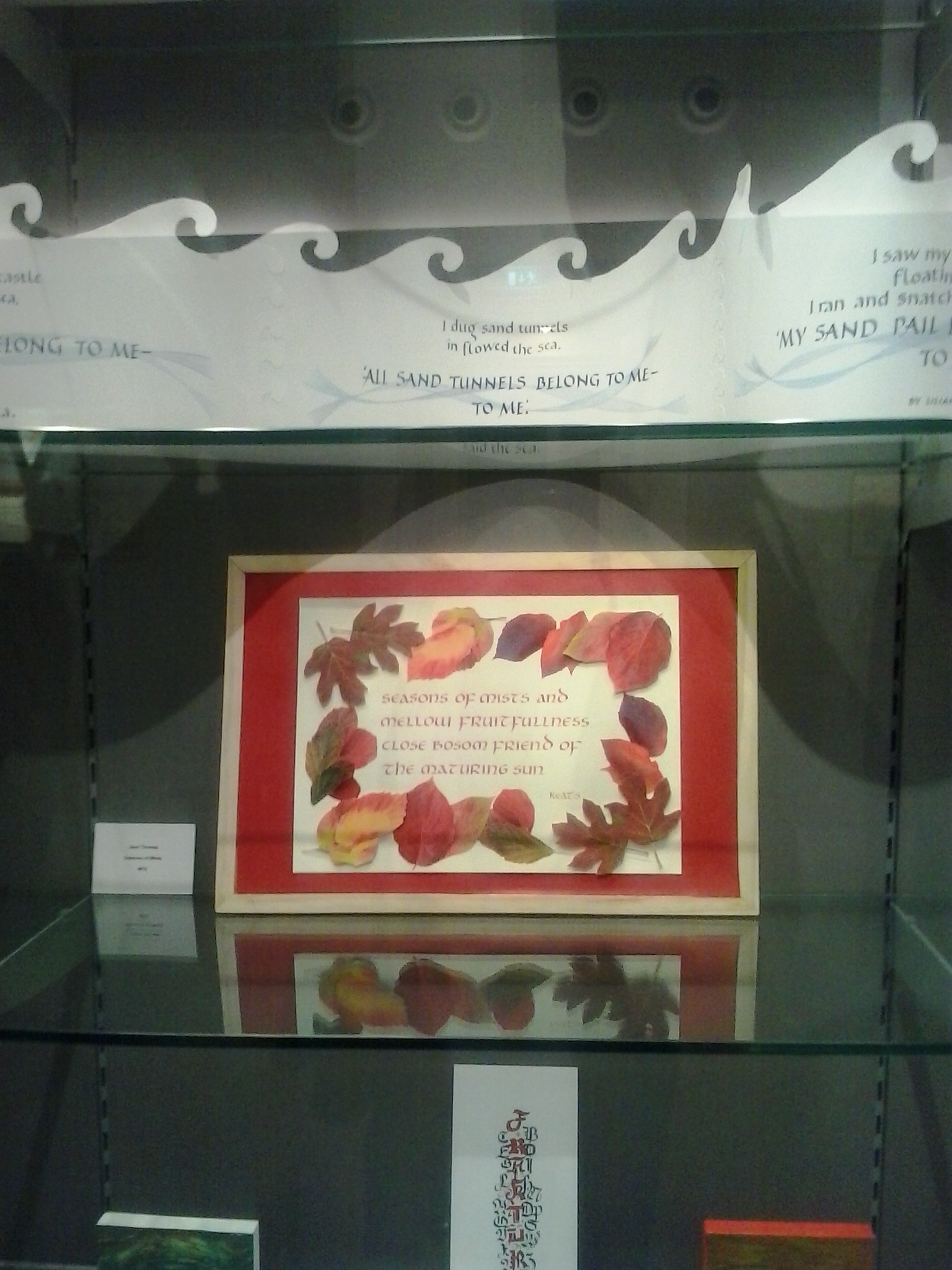 Both shows were of really high quality with a wide diversity of lettering interpretations and techniques used. Items ranged from classic poems to mushroom prints, from contemporary re-workings of the Lindisfarne Gospel to decorated pebbles.