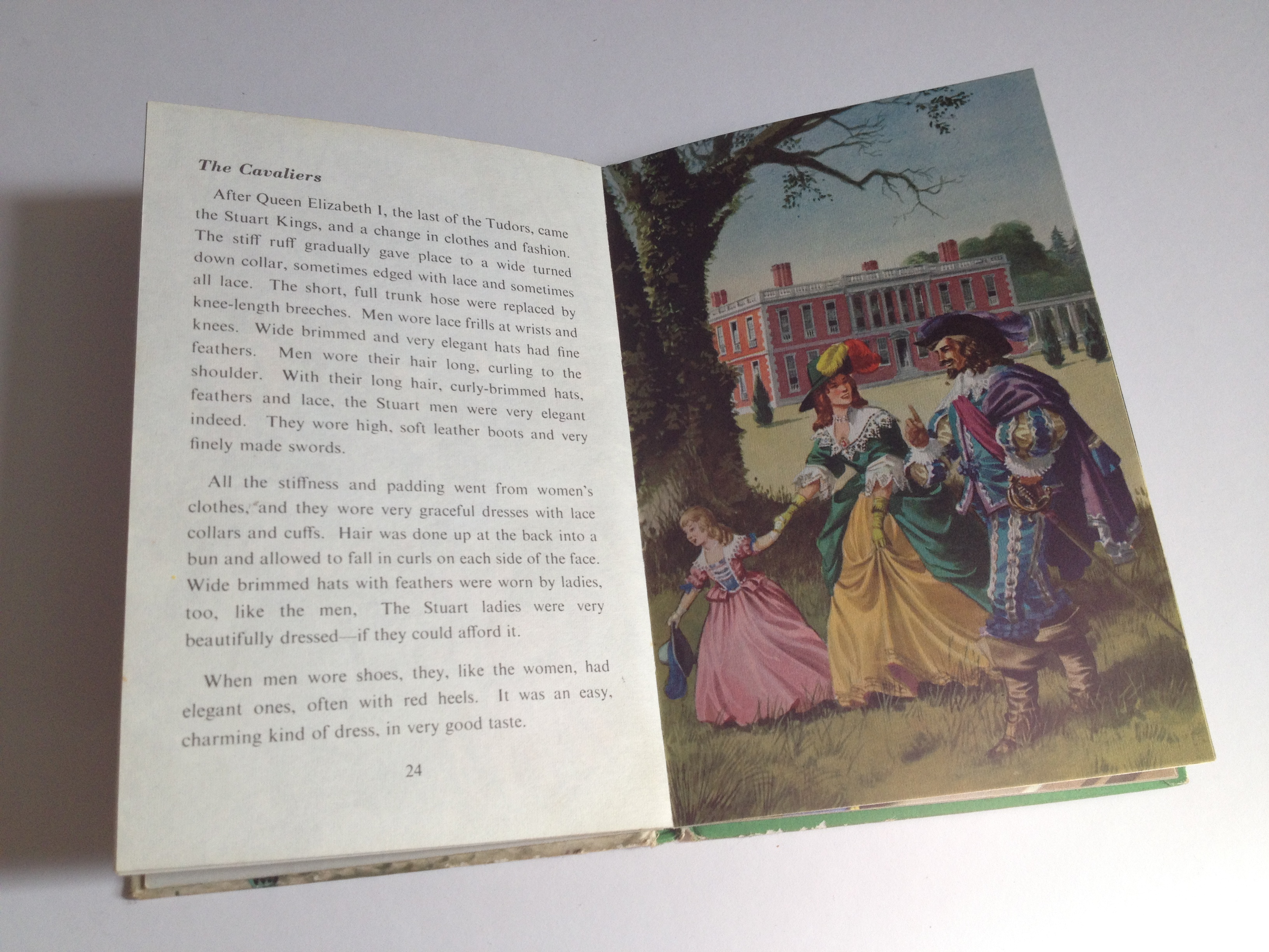 Not only was I mesmerised by the day to day time or the seasons, but a greater swathe of time was visualised for me in The Story of Clothes and Costume and The Story of Houses and Homes. These, along with a couple of other history books we had at home, generated an enduring love of the past, especially in the trivia of who was wearing what and where they were sitting or sipping drinks. What fabrics and colours went together, what accessories did the Victorian lady need to look cool? I lost count of how many home-made dressing up dolls in Elizabethan or Stuart costume I made and even now when I see a Georgian house part of my mind is seeing the Ladybird illustration.