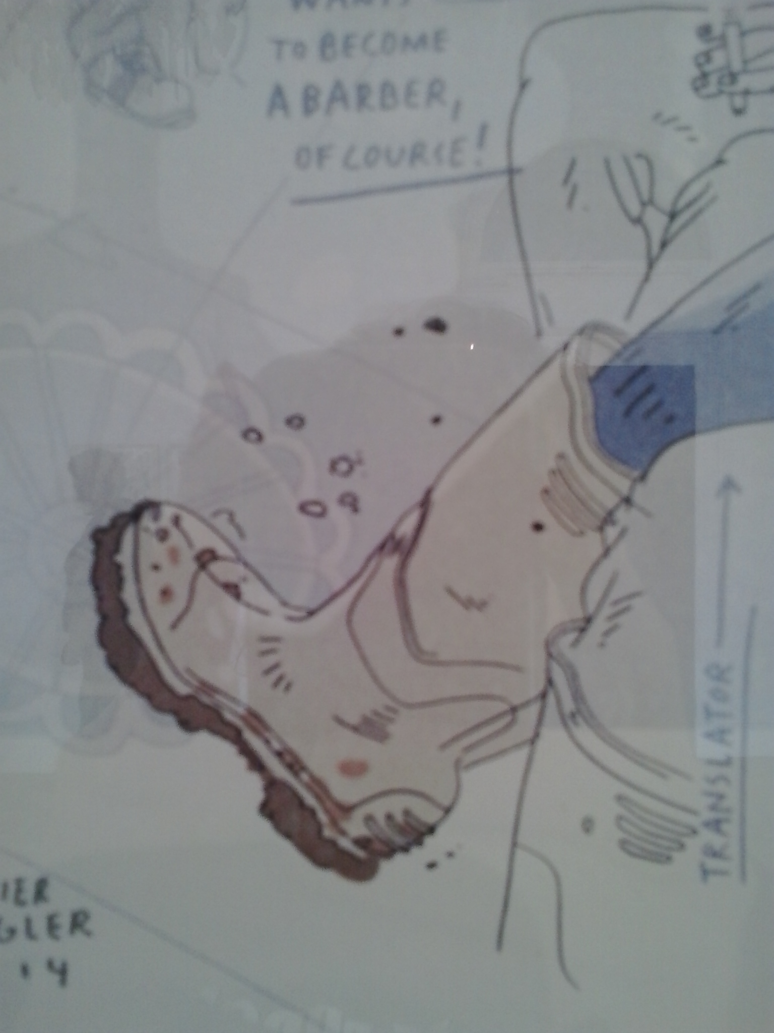 I was most inspired by a series of drawings by Olivier Kugler for New York’s Harpers Magazine about Syrian refugees in Iraqi Kurdistan. Not only was the topic very much in the spotlight at the moment, but the handling of the subject matter was careful to instil dignity to the people shown and to forefront their professions, even if the illustrations lament the subjects’ challenging struggles to maintain a semblance of their lives before removal to a new country. Kugler’s illustrations fascinated me because of the manner in which he had highlighted the centre of each image in water colour, leaving the edges of the images to become more and more subtle in colour until there remained just line work. But the best detail, for me, was the inclusion of notes within the actual images. Some were hand-written paragraphs beneath the illustration while others were quick notes with arrows within the image itself. One told us that Muhamed stands on broken cinder blocks at his hot drink cart to keep his feet out of the mud. Another just said “taxi” and pointed to a small car. Because the notes had not been removed at realisation stage they gave the works a sense of immediacy and urgency; an Impressionistic feel of a snapshot or journalistic noticing. This pointing out of detail made me feel a connection with the moment captured but also a lively connection to the artist himself and his processes. You can see Kugler’s refugees in detail at his portfolio website here.