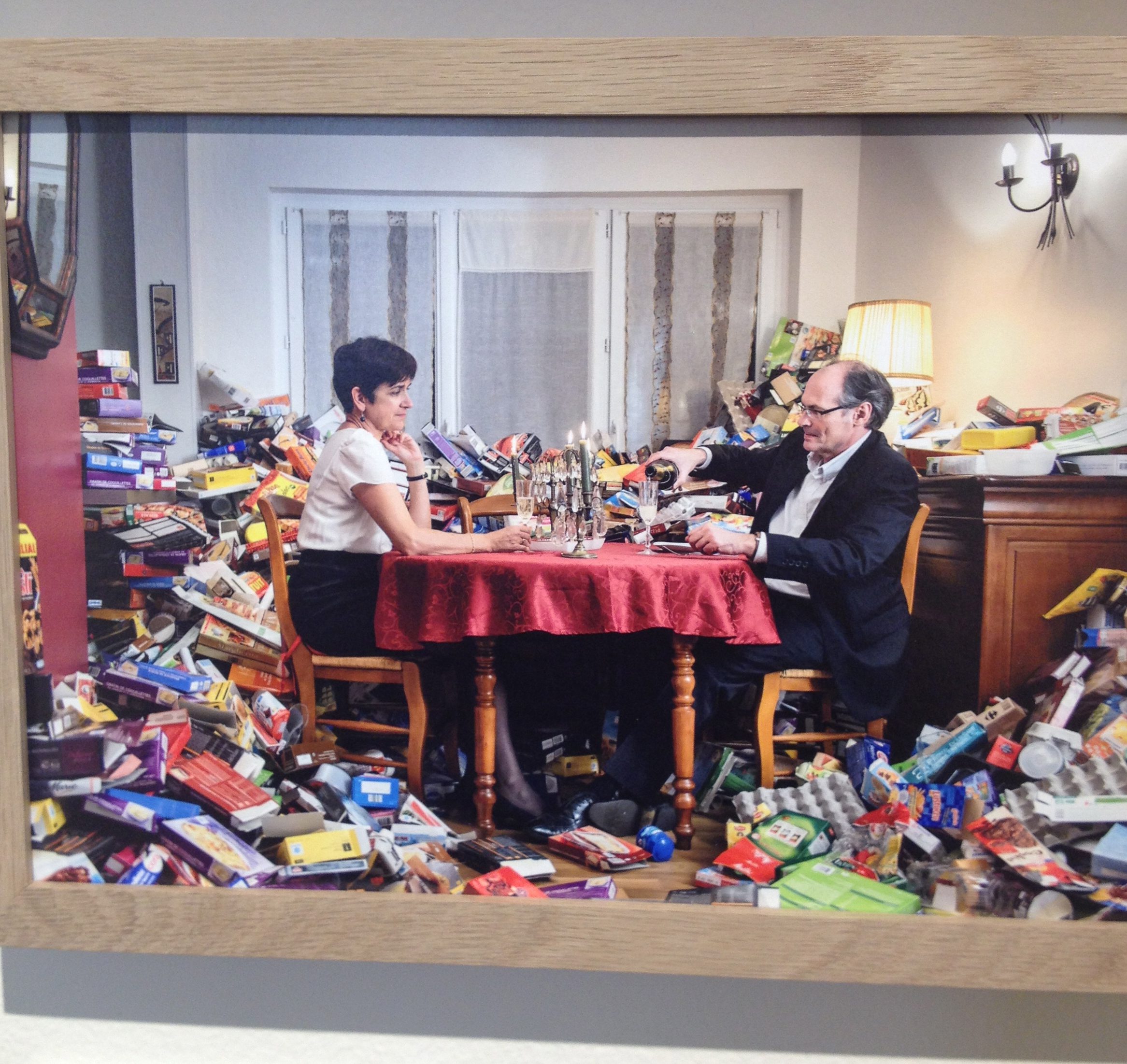 Moreover, this year the curation was a feature in its own right. The photographs were arranged to form patterns of their content. Red curtains through which we glimpse the Eiffel Tower, red theatre curtains slightly opened, red wall with a fox peering underneath, a fox on a stool and so on. Chains of ideas flowed through otherwise unrelated imagery because of the way that they had been assembled. Comparison worked here as a bridge between each scene so we could see lively bodies in the air (divers, gymnasts) against the sharp contrast of buildings or the colour and shape of large architecture. This added richness that helped each photograph yield its subject matter or flavour in a connected way, like complementary dishes in a haute cuisine feast.