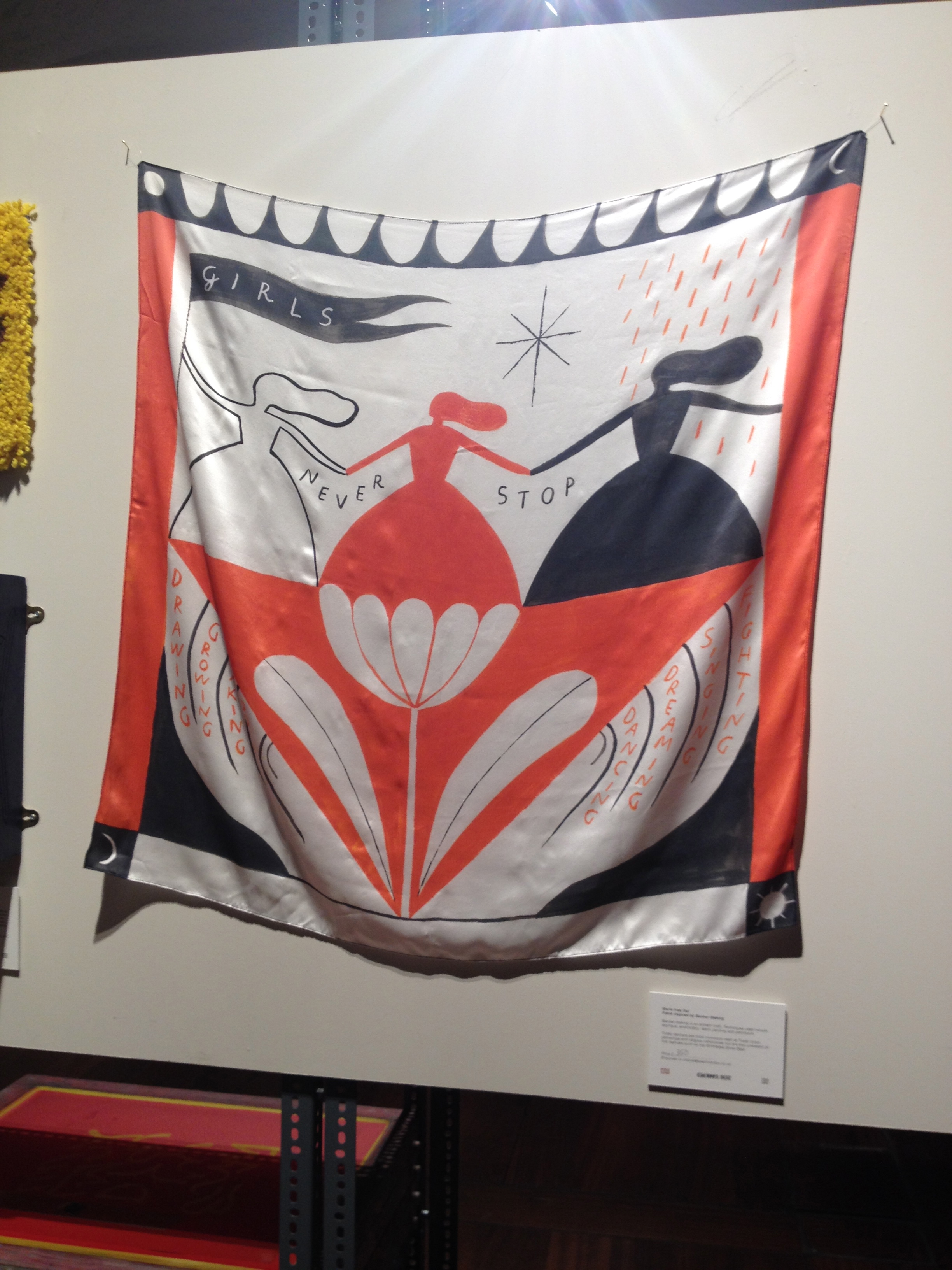 The question then remains, why am I so cheesed off with it? I accept that not all art or communication has to have a purpose, function or message. It does not have to be worthy or thought-provoking to be art, especially graphic art. If I accept that it is art, it must mean that I am saying it is not good art. Marie Jacotey’s drawings, for example, look fine in a different context in a graphic novel or comic strip where they usually reside. They’d work as editorial images, conveying a friendly yet sinister style and mood. After all Quentin Blake’s illustrations are simplistic, so is the style of the Simpsons and even much Pop Art. Yet these still hold meaning and their styling suits and contributes to what they want to say. I don’t want to hurt anyone’s feelings, especially when they are having a good time. Maybe just having so much of the same kind of thing in one place does each contributor a disfavour. So much lightweight “fun” all together wears a bit thin. Everything looks like a funny greetings card or a piñata and nothing looks like a piece of activism or serious attempt to communicate anything that matters. It is the consistency of the shallowness that annoys.