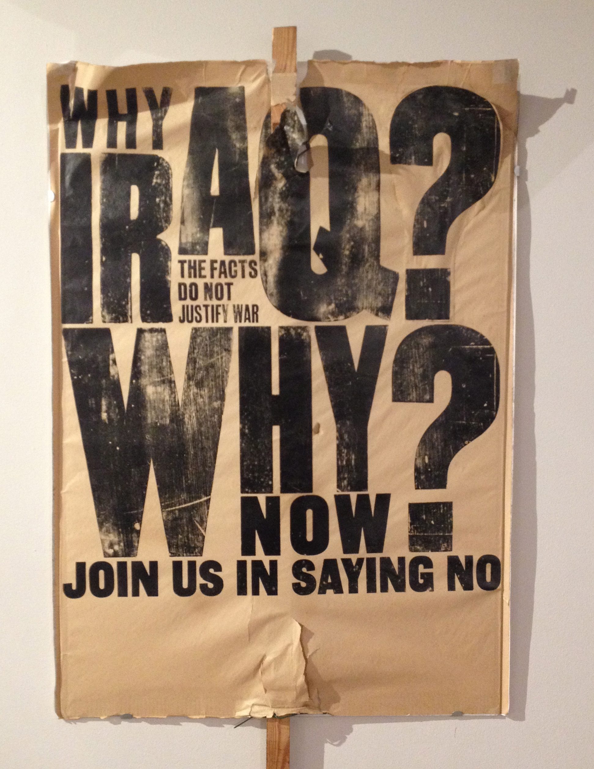 Thank goodness for the section downstairs of the letterpress work of Alan Kitchen (A Life In Letterpress). Here was one typographic poster that questioned in his bold lettering style, the war in Iraq.